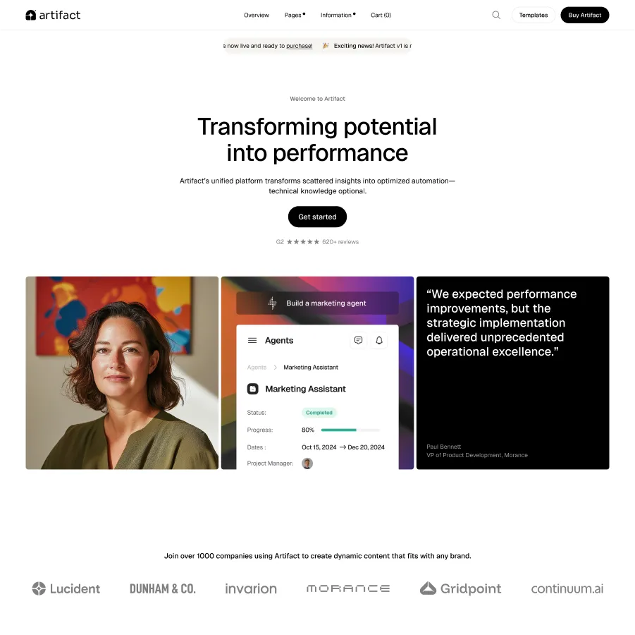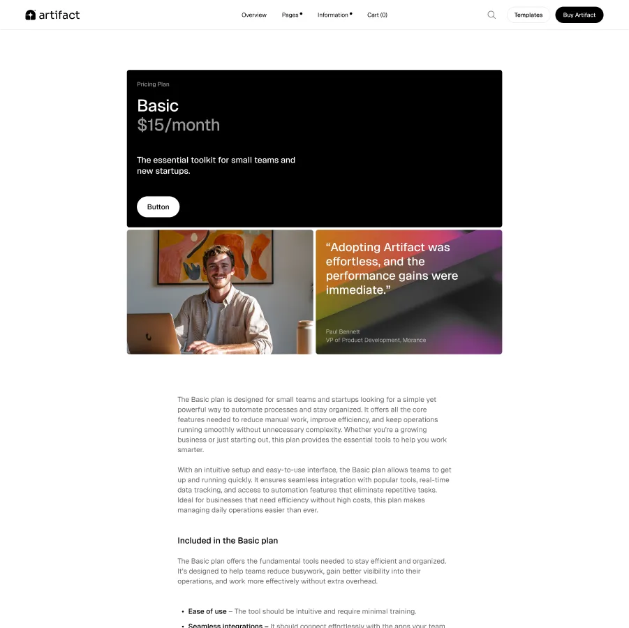Artifact is brimming with premium layouts and sections designed with true purpose.