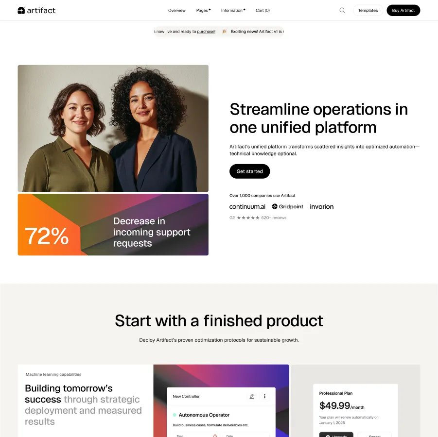 Artifact is a premium software and SaaS template designed for SaaS startups, software companies, cloud AI tools and more.